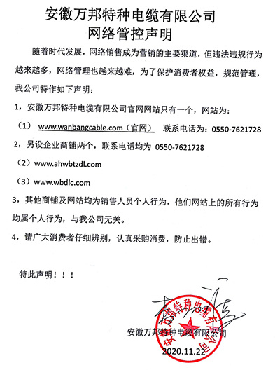 鄭重聲明:安徽萬(wàn)邦特種電纜有限公司官方網(wǎng)站為:www_wanbangcable_com.yonghenqj.cn,除此之外無(wú)任何子網(wǎng)站或合作網(wǎng)站,其余均為假冒偽劣。電話(huà):0550-7621728 13485756353 地 址:安徽省天長(zhǎng)市滁州高新技術(shù)產(chǎn)業(yè)開(kāi)發(fā)區(qū)經(jīng)四路29號(hào)